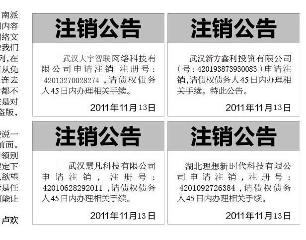 5、申請(qǐng)登報(bào)日期:這個(gè)需要企業(yè)跟報(bào)社事先講清楚,注銷公司的公告哪年哪月哪日必須跟你見報(bào),一般這個(gè)日期是跟你去工商部門辦理注銷時(shí)間密切相關(guān)的。大家需要注意的是,如果公告時(shí)間不足是不可以去辦理注銷手續(xù)的。