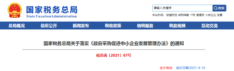為落實(shí)《財(cái)政部?工業(yè)和信息化部關(guān)于印發(fā)〈政府采購(gòu)促進(jìn)中小企業(yè)發(fā)展管理辦法〉的通知》(財(cái)庫(kù)〔2020〕46號(hào),以下簡(jiǎn)稱《辦法》)要求,發(fā)揮政府采購(gòu)政策功能,促進(jìn)中小企業(yè)發(fā)展,結(jié)合稅務(wù)系統(tǒng)實(shí)際,現(xiàn)將有關(guān)事項(xiàng)通知如下: